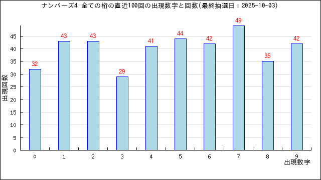 過去100回の一の位では