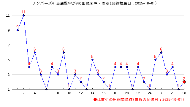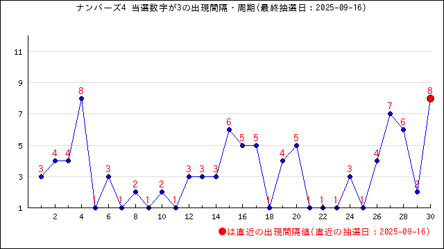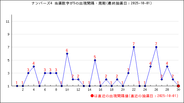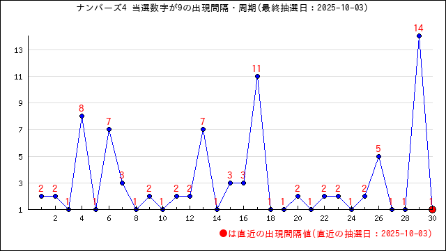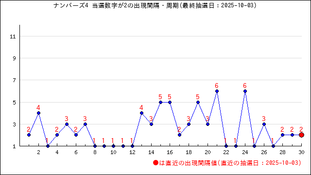 ナンバーズ4過去の出現間隔値・出現周期の推移