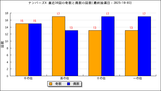当選番号の奇数・偶数の出現数をグラフにしました。