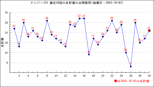 1番右端の赤丸の数字は前回出現した時の合計値です。