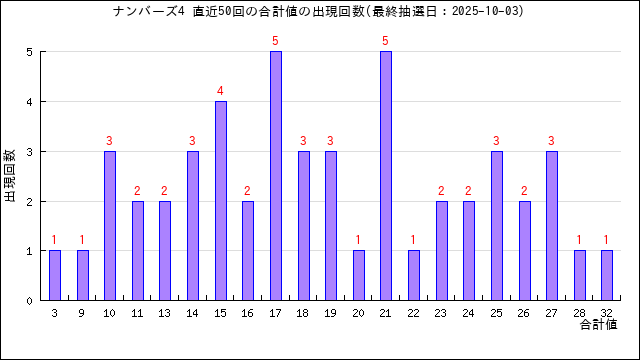 過去50回分の当選番号の合計値の出目表にしました。