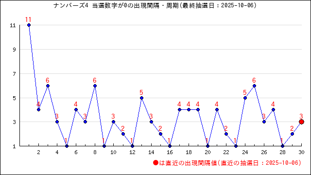 ナンバーズ4過去の出現間隔値・出現周期の推移