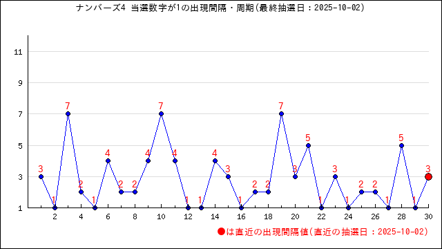 どの数字がどのくらいの周期で出ているのか確認が出来ます。