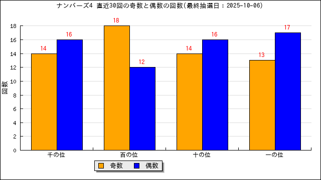 当選番号の奇数・偶数の出現数をグラフにしました。