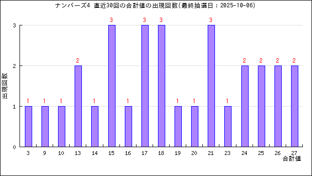過去30回分の当選番号の合計値の出目表にしました。