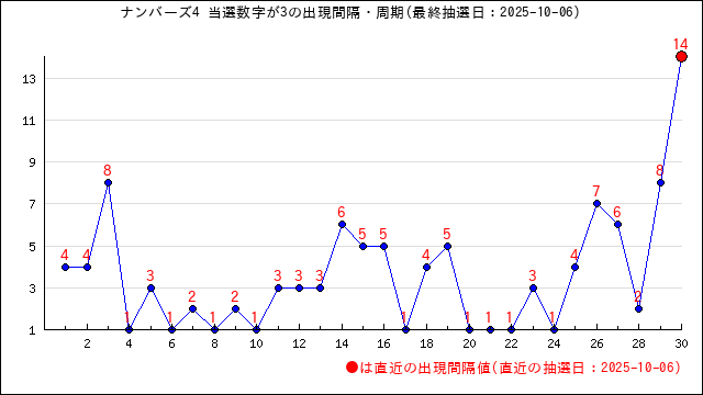 ナンバーズ4過去の出現間隔値・出現周期の推移