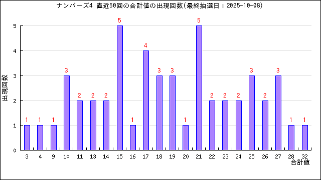 過去50回分の当選番号の合計値の出目表にしました。