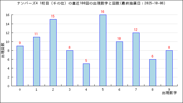 過去100回の一の位では