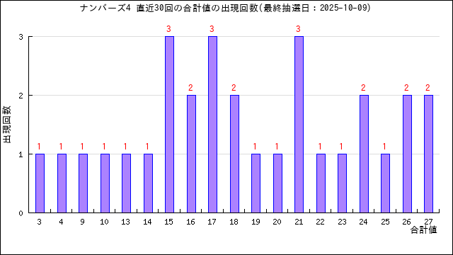 1番右端の赤丸の数字は前回出現した時の合計値です。