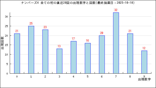 過去20回分の当選番号の出現グラフです。