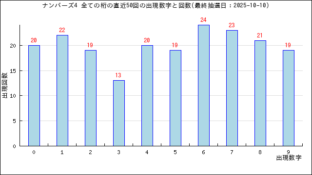 過去50回分の当選番号の出現グラフです。