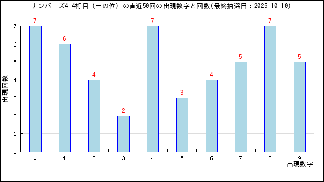 過去50回の一の位では